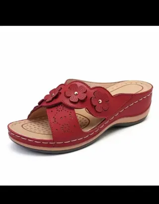 Sandalias rojas con un diseño floral. - Suela cómoda y con plataforma. - Detalle de perforaciones en la tira Pone que son unas 43 pero dan falla de 41 Preguntar sin compromiso