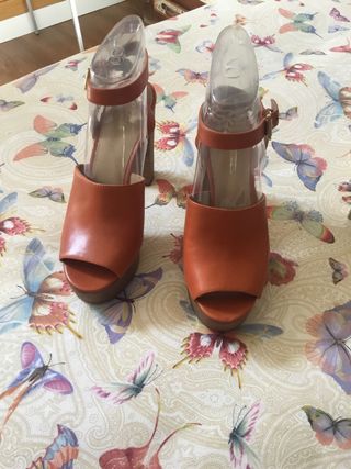 Sandalias plataforma beige talla 38