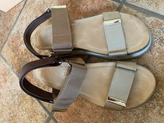 Sandalias planas, muy cómodas, en color khaki. Son preciosas y estan nuevas. - Tienen dos hebillas doradas. - La plataforma es muy cómoda.