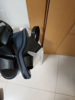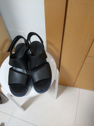 Sandalias de plataforma con tiras ajustables. - Diseño moderno. - Suela gruesa y cómoda. - Cierre de hebilla. - Solo venta en persona. - Precio no negociable.