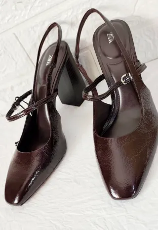 Sandalias tacón Zara piel Burdeos