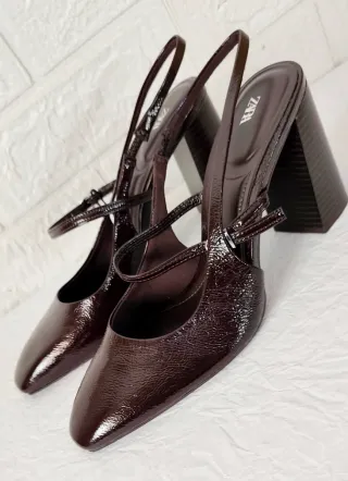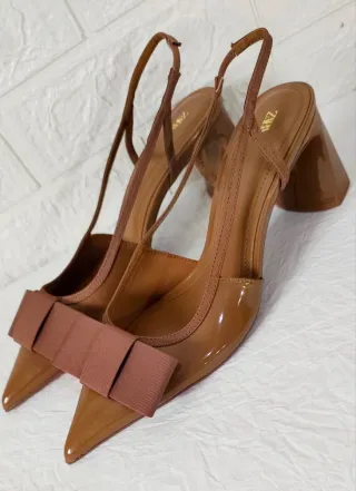 Sandalias tacón Zara lazo marrón