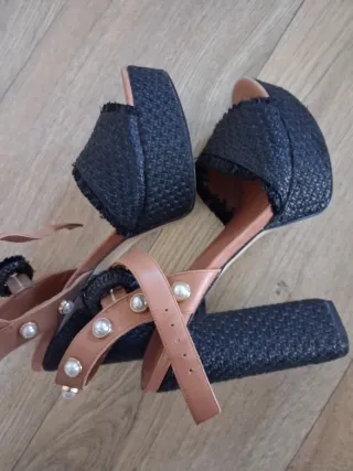 Sandalias de tacón de cuña de la marca Bershka. Muy cómodas. - Diseño con tiras. - Cierre de hebilla. - Material de ante.