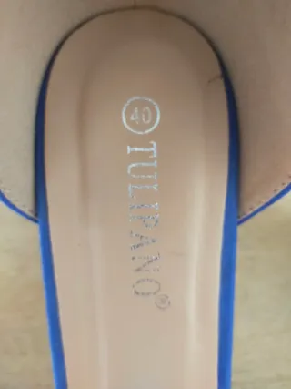 ✓ Elegantes sandalias de tacón con un diseño moderno y sofisticado en perfecto estado. Perfectas para complementar cualquier atuendo. - Talla: 38. - Tacón de 3 cm. - Color azul 💙 Klein. - Material satinado. - Tira ajustable en el tobillo. - Detalle de tiras cruzadas en la pala.