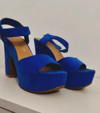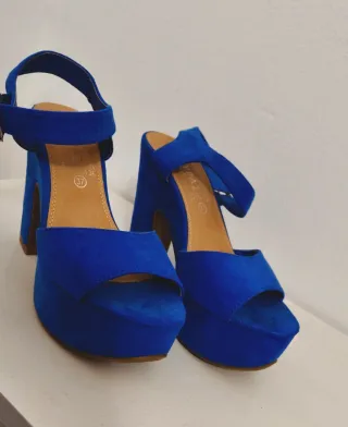Sandalias de plataforma color azul eléctrico con tacón ancho. Talla 37. Muy cómodas y estables. Usadas muy pocas veces, están en muy buen estado. Perfectas para verano, fiestas o eventos. Entrego en mano o envío por Wallapop.