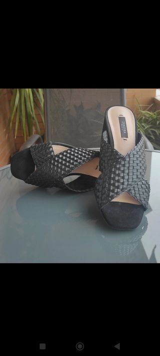 actuales ,de temporada,de antelina negra y piel,tacón ancho y muy alto,número 37, prácticamente nuevas,solo un rato d uso,cómodas,marca zara y sandalias rojas a estrenar del 37 d Sfera y azulona antelina con perlas,en perfecto estado