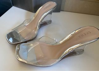 Sandalias de tacón alto y plataforma con acabado brillante y apliques de strass por toda la superficie, color plata. Cierre con pulsera al tobillo con cremallera para mayor comodidad y sujeción. NUEVAS, sin estrenar. ✨ Color: Plateado con strass ✨ Marca: Shein ✨ Talla: 41 ✨ Medidas: plataforma 3cm, tacón 12.5cm, longitud del pie 27cm, tira del tobillo 23cm, tiro del tobillo 8cm, ancho del pie 8,5cm.