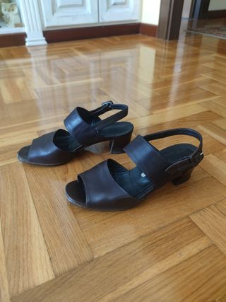 Sandalias negras tacón bajo 36