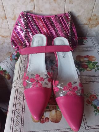 Sandalias y bolso rosa fiesta