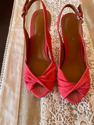 Son de muy buena calidad, de la marca Alma Blanco, y tienen poco uso. Las vendo porque no puedo usar tacón. Son de piel de serpiente, de un color muy combinable. Tienen un diseño elegante, con tiras que sujetan muy bien el pie y cremallera atrás, en el talón. Medidas: 27 cm de largo (medido sobre la superficie en la que se apoya el pie) y 5 cm de alto.