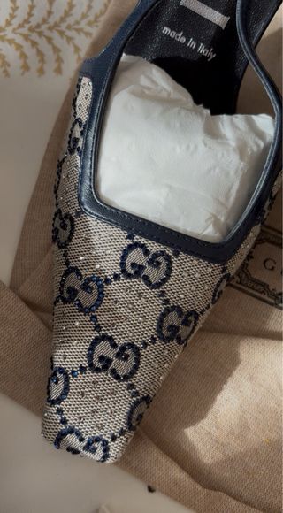 Elegantes sandalias de edición limitada de Gucci en colaboración con Tom Ford. De desfile. - Diseño con el icónico monograma GG. - Combinación de colores beige y azul. - Tira de ajuste en el tobillo. - Detalle de pedrería. - Tacón fino de 10 cm - bordado exquisito solo usadas en 2 eventos un pequeño roce en el tacón resto están impolutas pertenecieron a una edición limitada y son una joya pieza de colección el número 39.5 italiano equivale a un 40 español