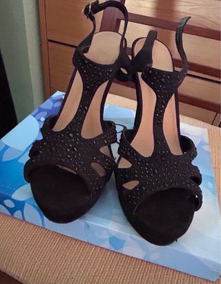 sandalia de ante color negro con incrustaciones de pedreria,usadas una vez