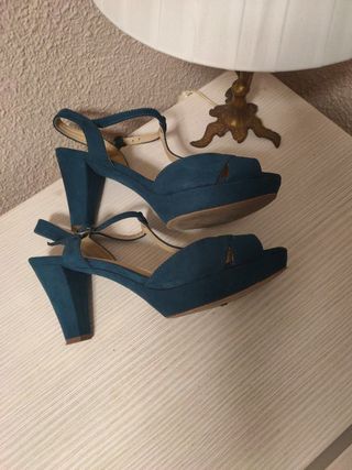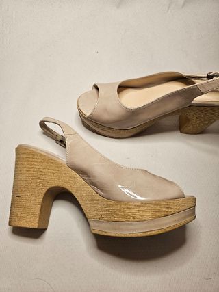 Sandalias de tacón con plataforma. No las he llegado a usar, se puede comprobar en la suela. Me resulta alto el tacón y no estoy acostumbrada.