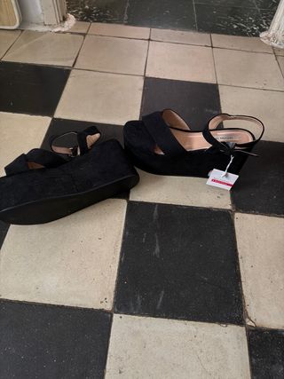 Sandalias negras de tacón con plataforma, como nuevas. Solo me las he puesto una vez para una boda. Las vendo porque no uso tacones.
