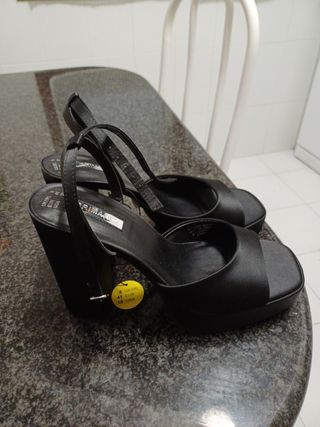 Sandalias tacón negro. Talla 39. puestas una sola vez. 10 cm de tacón y 2 cm de plataforma. Muy cómodas.