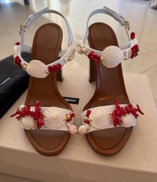 Sandalias de tacón Keira de Dolce & Gabbana con un diseño inspirado en el mar. - Detalle de conchas marinas y corales. - Tacón de 105 mm. - Tiras blancas con adornos.