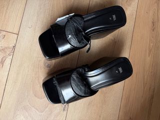 Sandalias de plataforma de Zara. - Diseño moderno y elegante. - Acabado brillante. - Tira ancha en la parte delantera.
