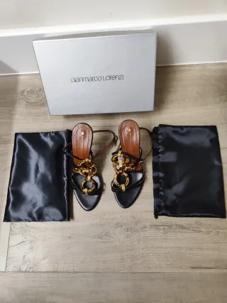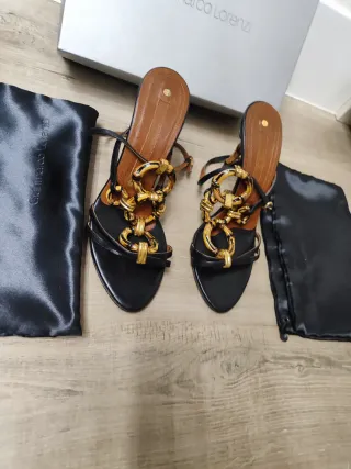 Sandalias tacon Gianmarco Lorenzi Negro y Dorado