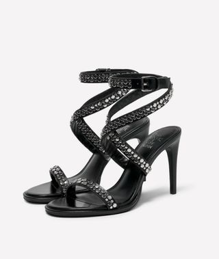 Sandalias de tacón de la colaboración entre Zara y Ludovic de Saint Sernin. Un diseño elegante. - Tiras finas adornadas con tachuelas plateadas. - Cierre de hebilla en el tobillo. - Tacón alto y fino.