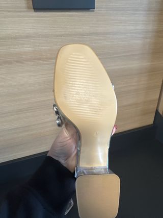 Elegantes sandalias de tacón de Zara con un diseño moderno y llamativo. - Tiras transparentes con detalles brillantes. - Tacón fino y elegante. - Punta afilada.