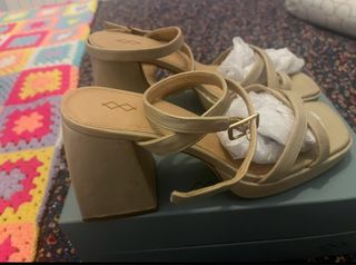 Sandalias de tacón beige y marrón talla 39