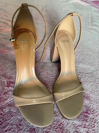 Sandalias de tacón con tiras finas. - Diseño elegante y moderno. - Tacón cuadrado. - Cierre de pulsera al tobillo. Un solo uso Precio mango 34,95€ Si te gusta el bolso que tengo que va a juego, serian 5€ mas :) ( foto en mi perfil)