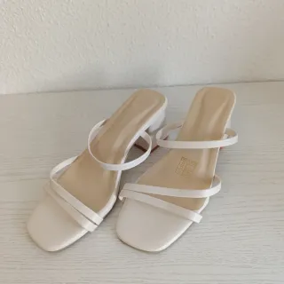 Elegantes sandalias de tacón con diseño de punta cuadrada. - Tira fina tipo chancla. - Tacón finonde 8 cms