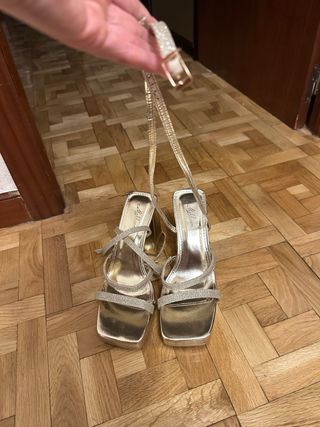 Sandalias doradas tacón tiras. Sin usar