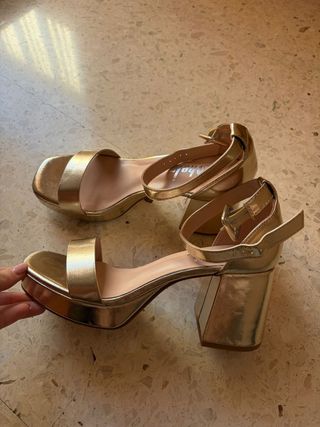 Sandalias doradas plataforma tacón