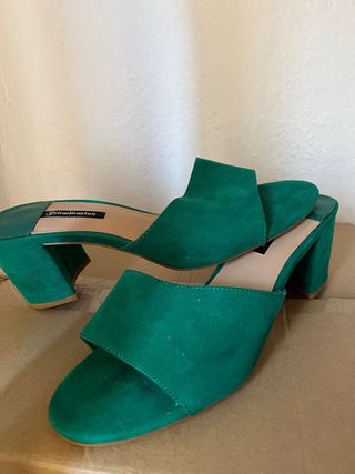 Sandalias de tacón de Stradivarius en color verde. - Diseño abierto. - Tacón grueso y cuadrado. - Material de ante.