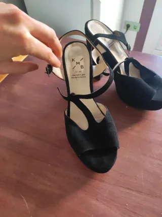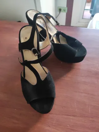 Elegantes tacones KMB en color negro. - Diseño de sandalia con plataforma. - Tiras ajustables con hebilla. - Material de ante. Un uso