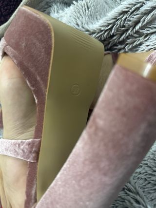 Tacones de terciopelo con un diseño elegante y moderno. - Material: Terciopelo. - Color: Rosa. - Diseño de atar al tobillo.