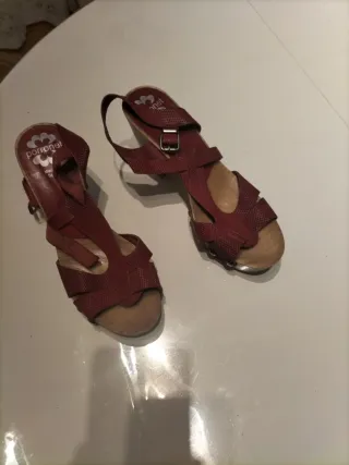 Fantásticas sandalias con plataforma Red Valentino color burdeos con pulsera al tobillo. Muy cómodas. Usadas un par de veces. Talla 39, normal.