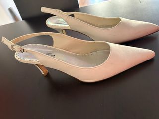 Preciosos tacones de color rosa palo, perfectos para bodas, comuniones, fiestas o cualquier ocasión especial. Tacón cómodo y elegante, ideal para estar guapa sin sufrir. Diseño fino y sofisticado, fácil de combinar con cualquier look. Material de buena calidad y en buen estado. 📏 Talla: 37 💰 Precio: 20 € (negociable) ¡Listos para dar un toque elegante a tu outfit!