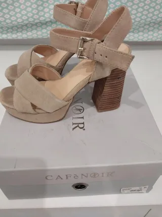 Sandalias de tacón de la marca Corina. Son de color beige con detalles dorados. - Tacón de altura media. - Material tipo ante. - Perfecto estado. Con plataforma. Tacón de 7 centímetros que al tener plataforma parece menos alto. El precio de origen está marcado en la caja. Super cómodas.