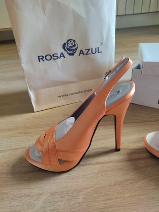 Sandalias de tacón a estrenar. Perfectos para cualquier fiesta o evento. Color: naranja satinado. Talla: 38.