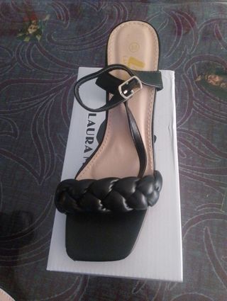 Zandalia de tacón color negra,n38 a estrenar ,adorno trenzado se vende en córdoba capital