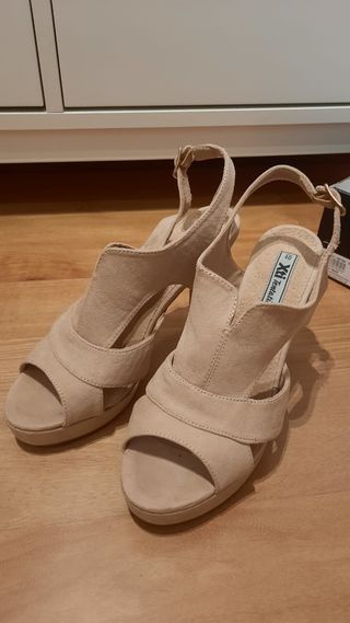 Sandalias de tacón alto en color beige. 1 día de uso. - Tacón alto y cómodo. - Material de ante. - Perfecto estado.