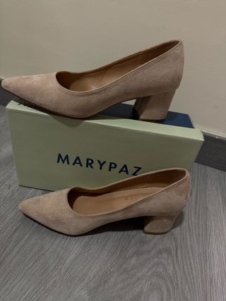 Zapatos Marypaz Beige Tacón Bloque