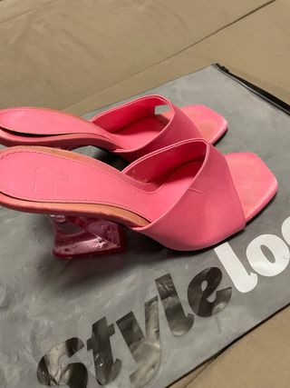 Elegantes zapatos de tacón de Zara en color rosa. Perfectos para añadir un toque de estilo a cualquier atuendo. - Tacón de diseño transparente. - Diseño abierto tipo sandalia. Estado: usadas en reiteradas ocasiones pero bien cuidadas. Compradas en un Zara en Valencia.
