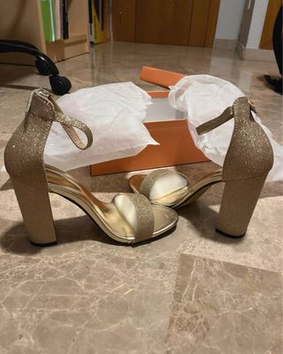 Tacones color dorado con purpurina. Talla 36,5. Nunca usados.
