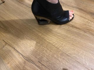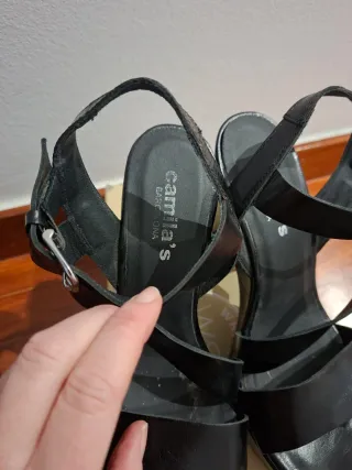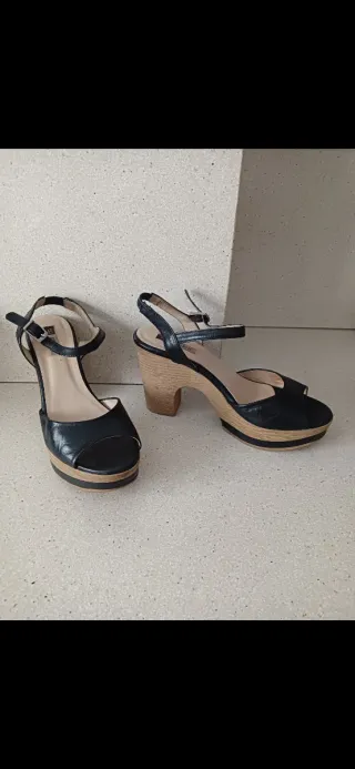 Tacones negros con plantilla de piel. son muy comodos por la plataforma que lleva. los roces que lleva son los de la foto de lejos no se aprecian tanto - Diseño de plataforma. - Tira al tobillo con hebilla.