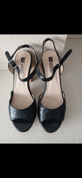Sandalias Gadea de piel en color negro. No pesan, tacón 11cm de alto y 3cm de plataforma. Número 40