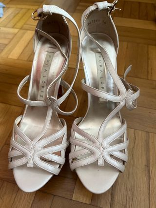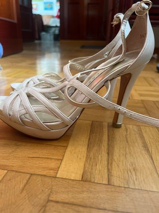 Sandalias de piel puestas en una ocasión. Muy muy cómodas. Perfectas para bodas y eventos. Altura del tacón (contando la plataforma): 13 cm. Plataforma de 4 cm. Marca Bibi Lou