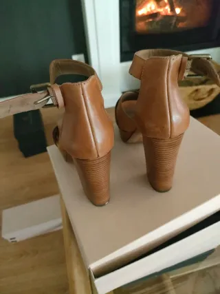 Sandalias de piel de tacón elegantes, apenas usadas, muy cómodas