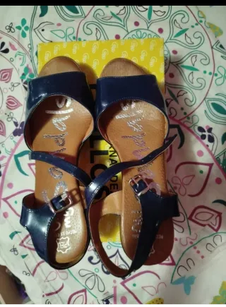 Sandalias de piel con acabado charol, nuevas a estrenar. - Material: Piel. - Acabado: Charol. - Cierre con pulsera al tobillo.