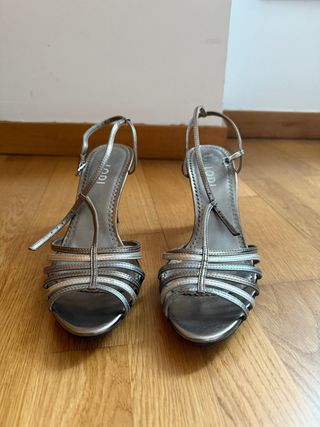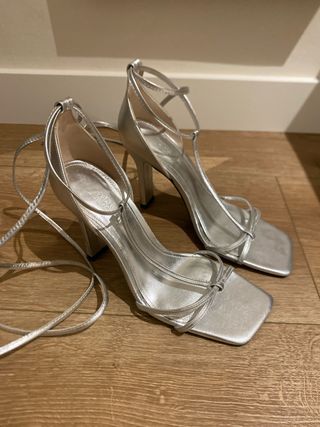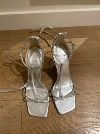Sandalias tacón Zara piel plateadas