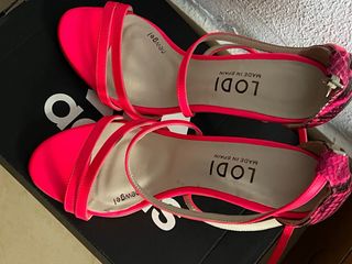 Sandalias Lodi Tacon Serpiente Rosa Neón