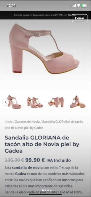 Sandalia Gadea Tacón Alto Novia Rosa