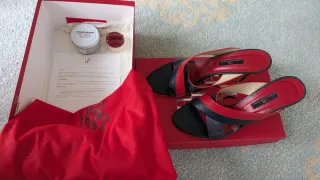 Sandalias de piel y madera rojas